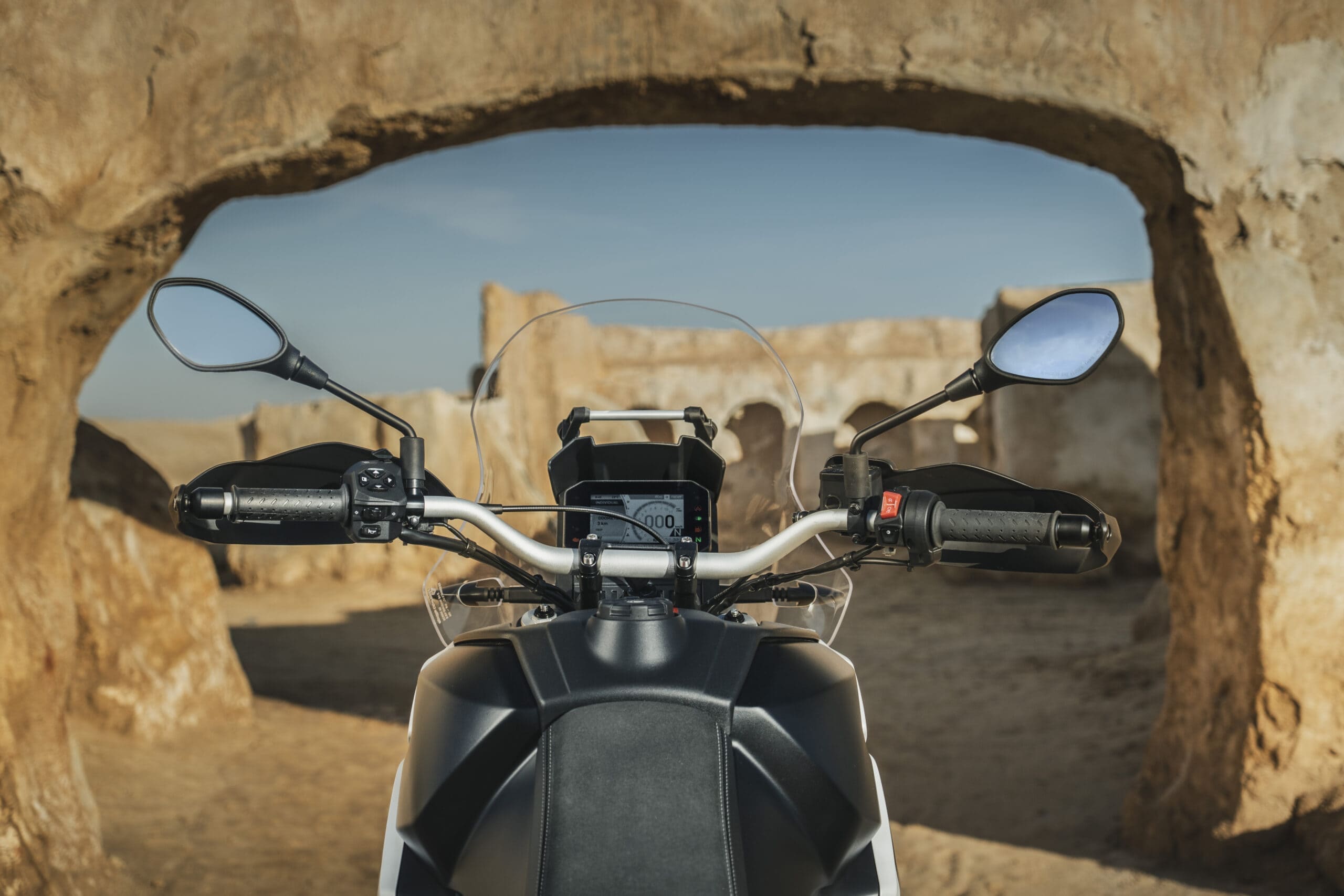 En cuanto a parte ciclo, la Tuareg 660 incorpora un chasis tubular de acero con subchasis desmontable, junto a suspensiones de largo recorrido totalmente regulables que priorizan el control en terrenos irregulares. Equipa llantas de radios de 21” delante y 18” detrás, frenos Brembo y un completo paquete electrónico que incluye control de tracción, control de crucero, freno motor ajustable y múltiples modos de conducción, además de ABS configurable para uso offroad. Su diseño es funcional y robusto, con depósito estilizado, ergonomía cómoda para conducción de pie y una pantalla TFT a color, reforzando su carácter adventure moderno.